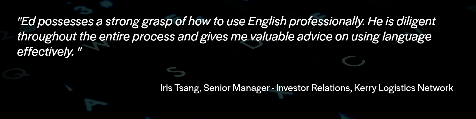 Backed by 20 years of experience as a journalist and editor in the UK and Hong Kong, Ed Chadwick will ensure your written IR output meets high standards of clarity, accuracy and consistency.